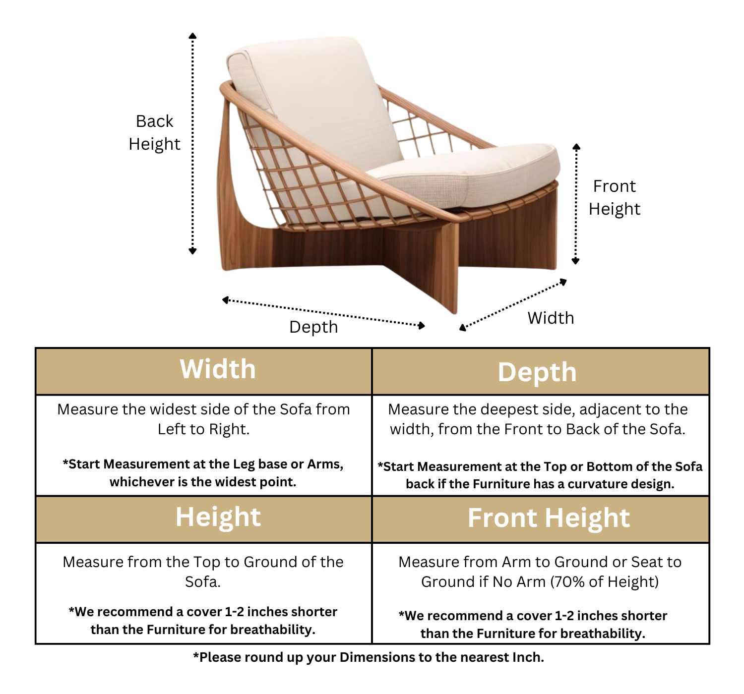 To achieve the best possible fit for your Patio Chair, follow our detailed measurement guide below.